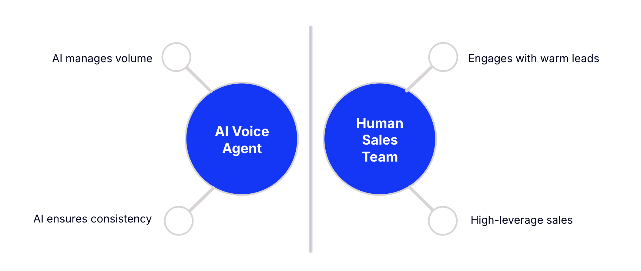 Yes, but fewer and at a higher level. The AI handles volume and consistency. Your team focuses only on warm prospects who already showed intent.